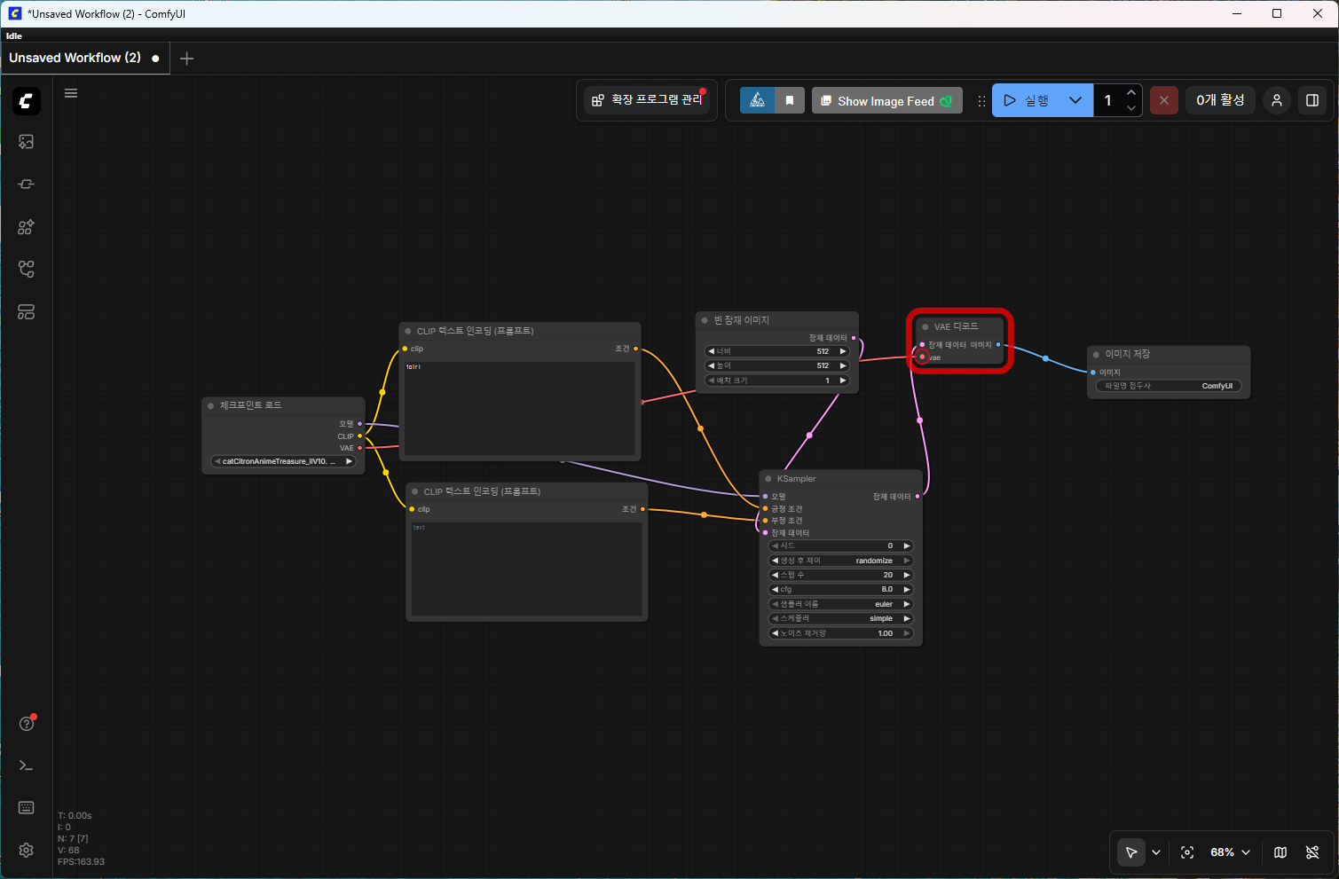 그러나 필자가 노드를 다 연결하였다고 생각하였으나... vae쪽 연결을 깜빡했다.