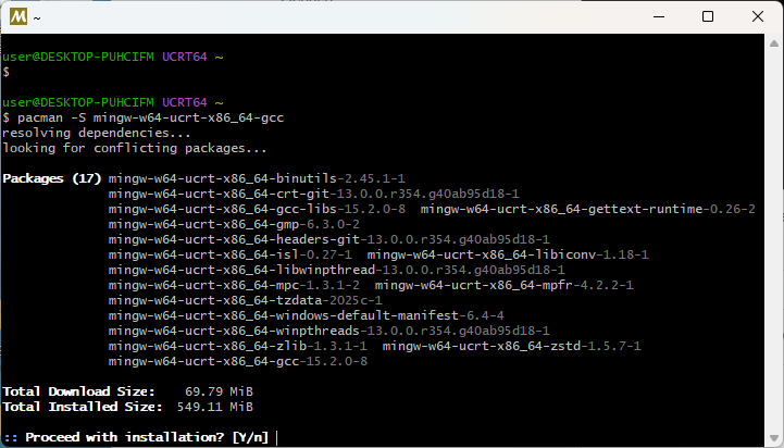 pacman -S mingw-w64-ucrt-x86_64-gcc