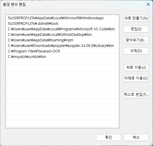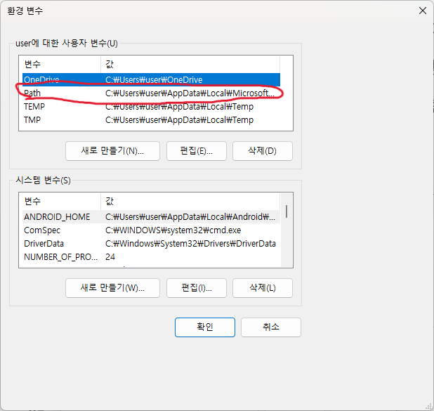 여기서 밑에 있는 환경 변수(N)...에 들어가준다.