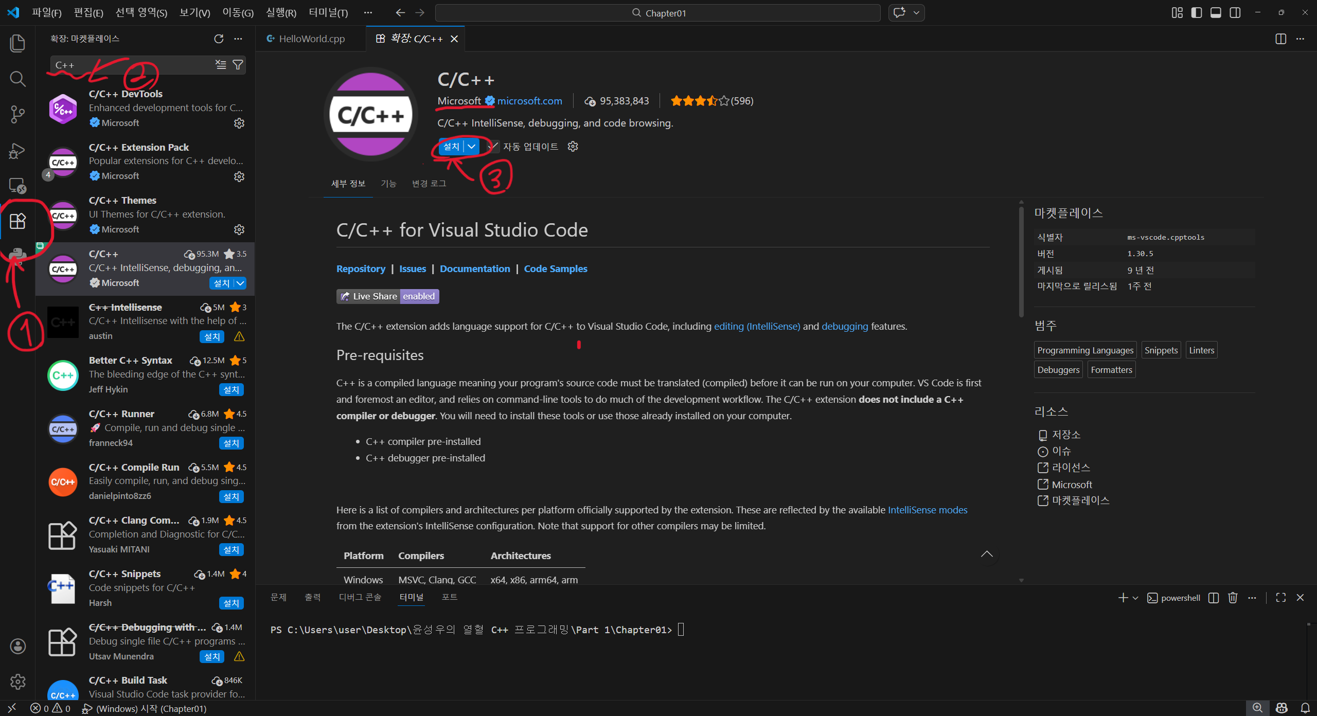 이후, 다시 VsCode를 실행하고 실행할때 위에 올라온 걸로 컴파일 해주면